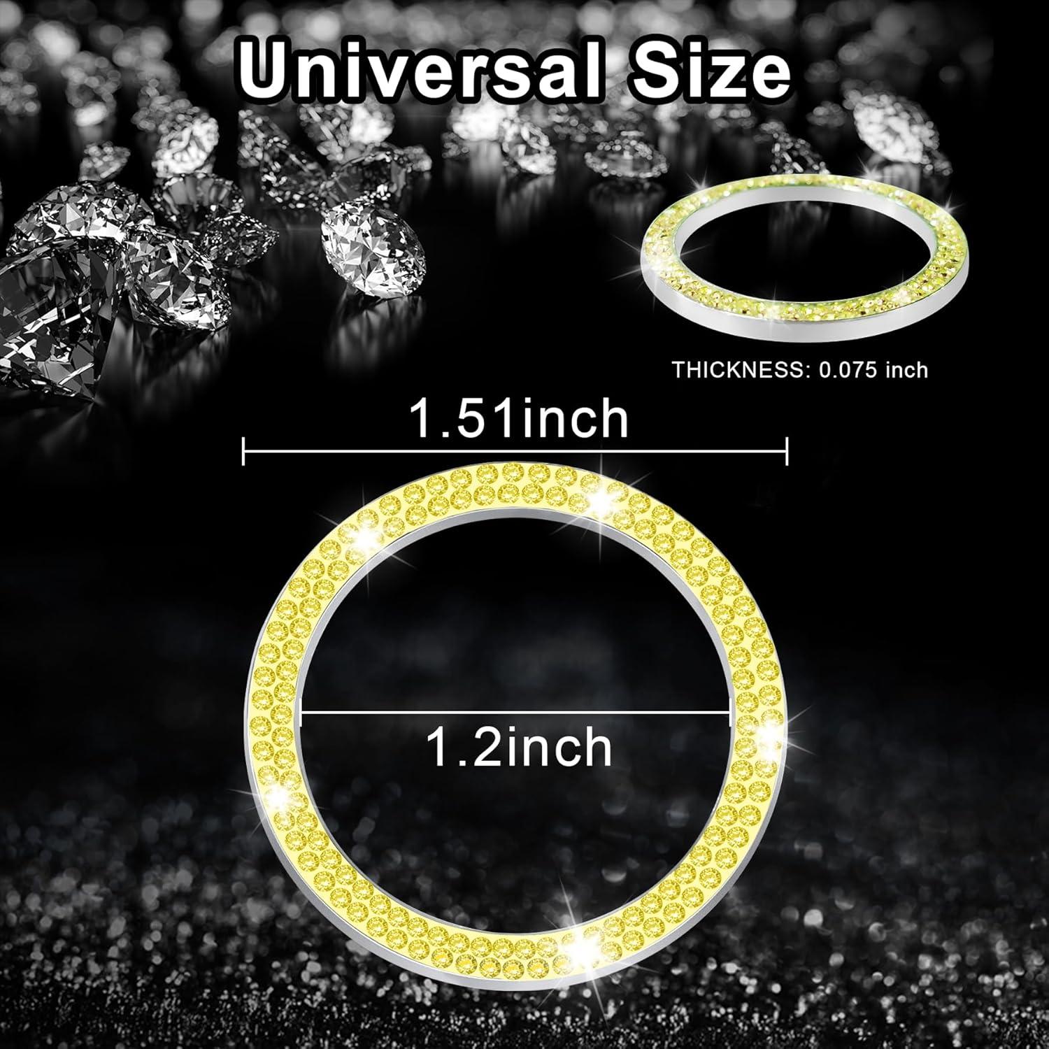 LivTee 2 PCS Crystal Rhinestone Car Engine Start Stop Decoration Ring, Bling Car Interior Accessories for Women, Push to Start Button Cover Sticker, Automotive Decals, White(Double Lemon-yellow)