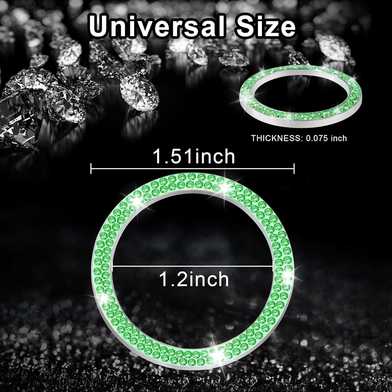 LivTee 2 PCS Crystal Rhinestone Car Engine Start Stop Decoration Ring, Bling Car Interior Accessories for Women, Push to Start Button Cover Sticker, Automotive Decals, White(Double Light Green)