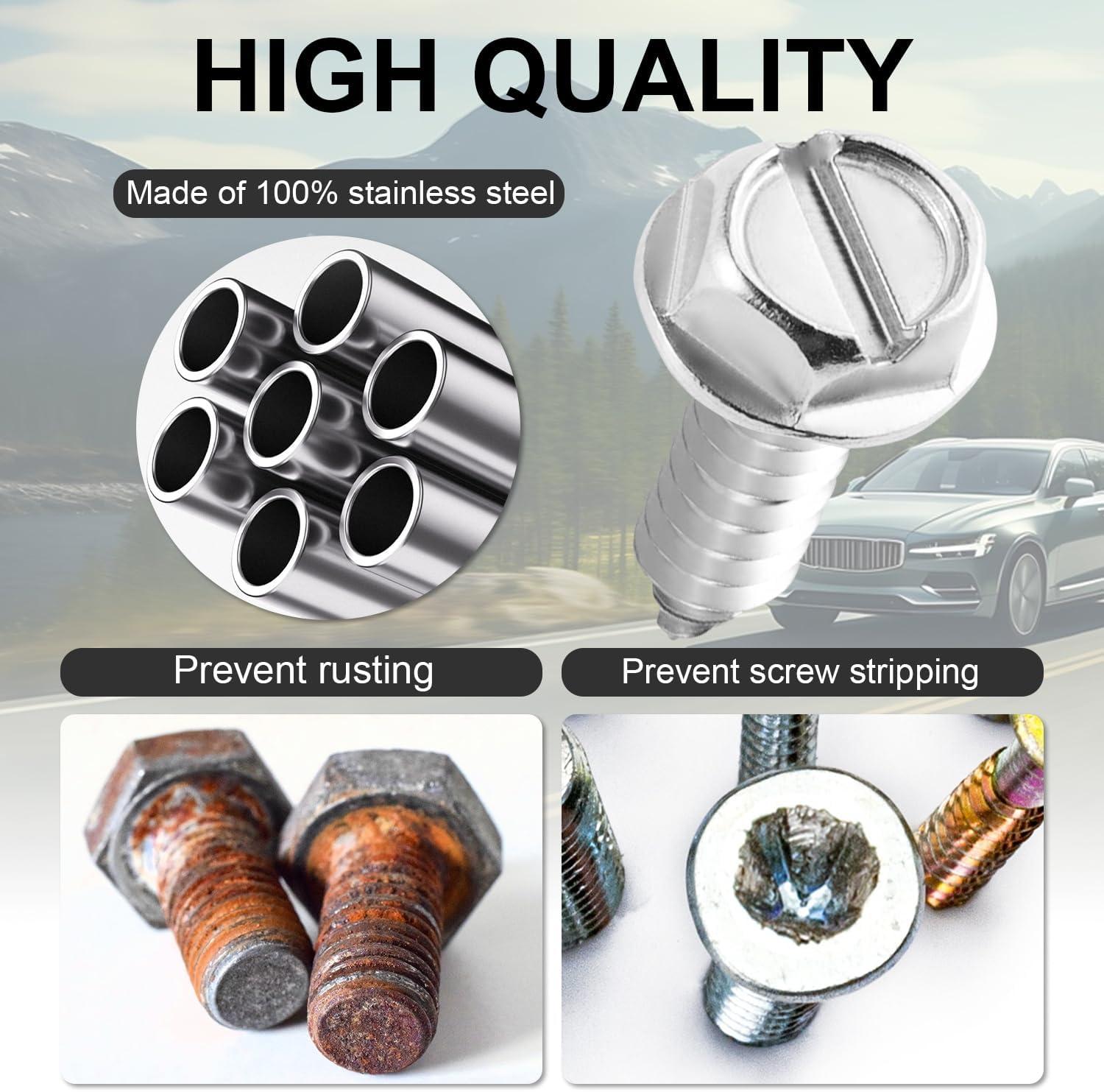 High Quality: Rustproof car number plate screws are made from premium 304 stainless steel, heavy-duty, sturdy and durable, corrosion-resistant, rust-resistant and weather-resistant.