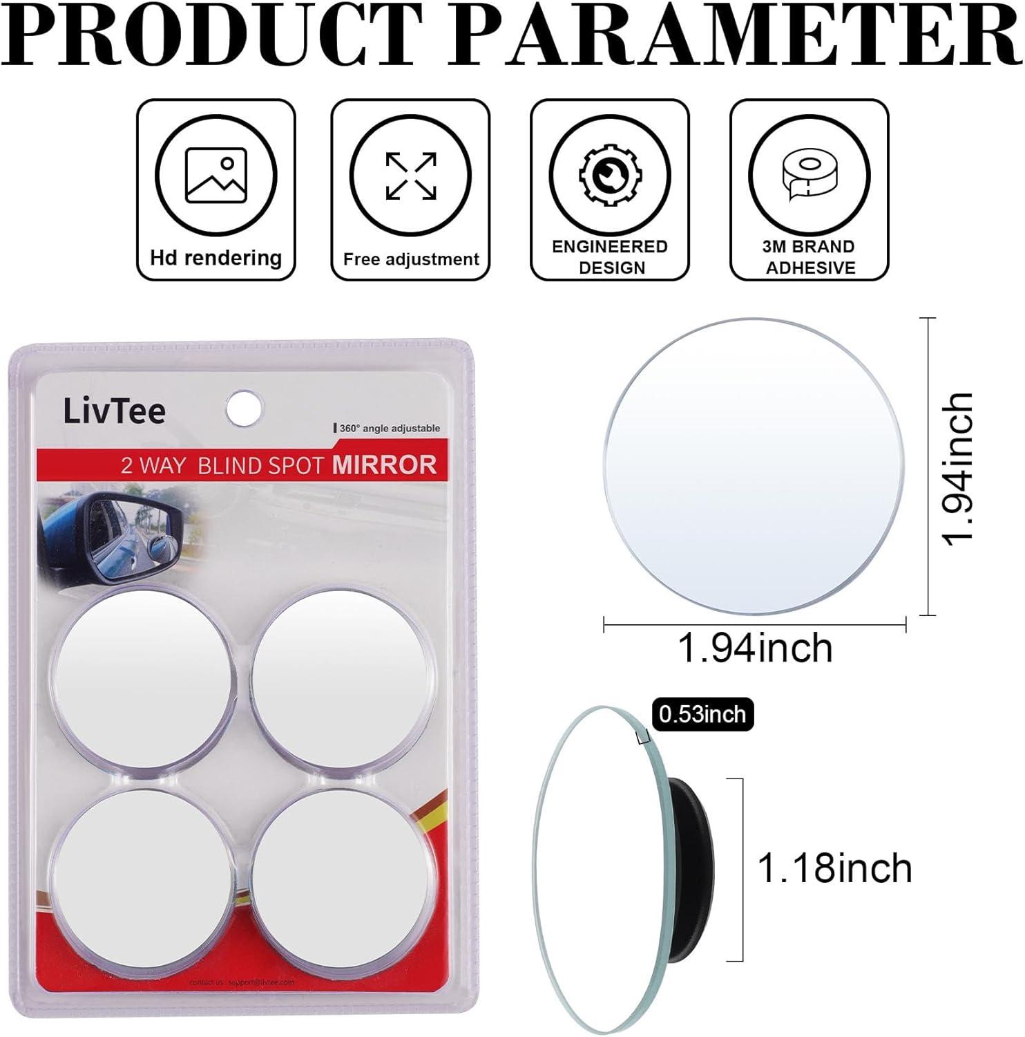 【360 Degree Adjustable】 The LivTee 2-Pack Blind Spot Mirrors feature an upgraded 360-degree adjustable rotation and sway design. These side mirror blind spot accessories offer a wide-angle convex view that effectively eliminates blind spots and enhances your rear view mirror visibility for safer lane changes.