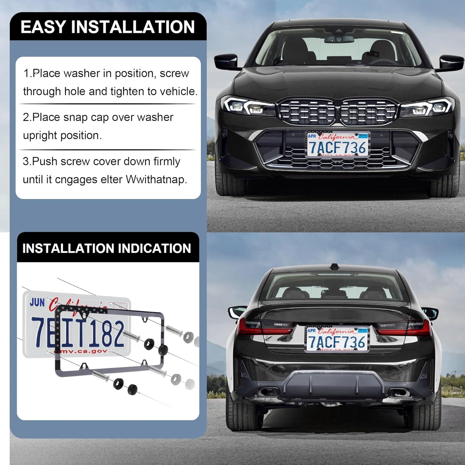 【Complete Installation Kit】 Includes 2 license plate frames and all the necessary accessories: 8 plastic screw caps, 8 plastic washers, 8 machine screws, 4 self-tapping screws, and 1 screwdriver. This all-in-one kit ensures easy and secure installation.