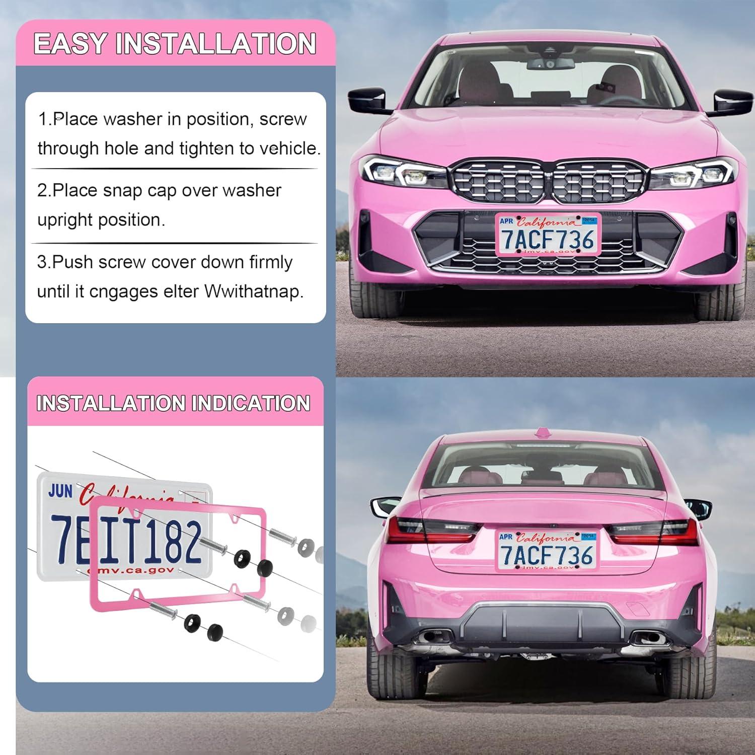 imageLivTee Carbon Fiber License Plate Frames 2 Holes Stainless Steel License Plate Covers 2PCS Car License Plate Holder Slim Design with Gasket Cover for US Cars Automotive Exterior AccessoriesHot Pink