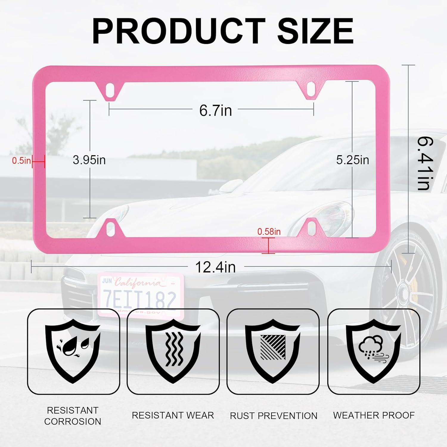 【Durable and Weather-Resistant】Crafted from high-quality stainless steel, these license plate frames resist rust, corrosion, wear, water, and high temperatures. The 1.2mm thick powder coating ensures they are fade and chip-resistant, maintaining durability and a stylish appearance in all weather conditions.